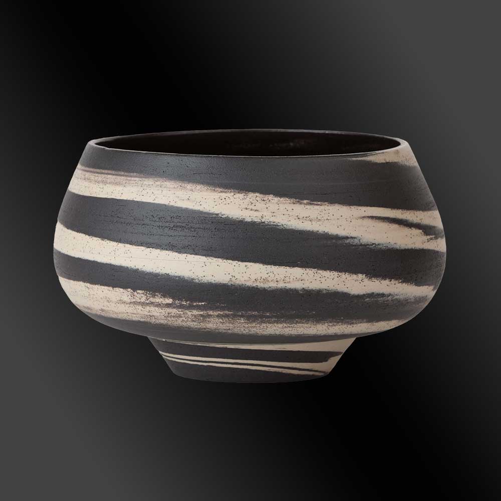 My latest design: a vessel with a perfectly curved profile that appears to float effortlessly. The rims are folded inward, adding a sense of movement and futurism. Made from white stoneware, the exterior is unglazed and polished smooth, while the inside features a vibrant, glossy royal blue glaze. Find it under “Orb” in my shop.